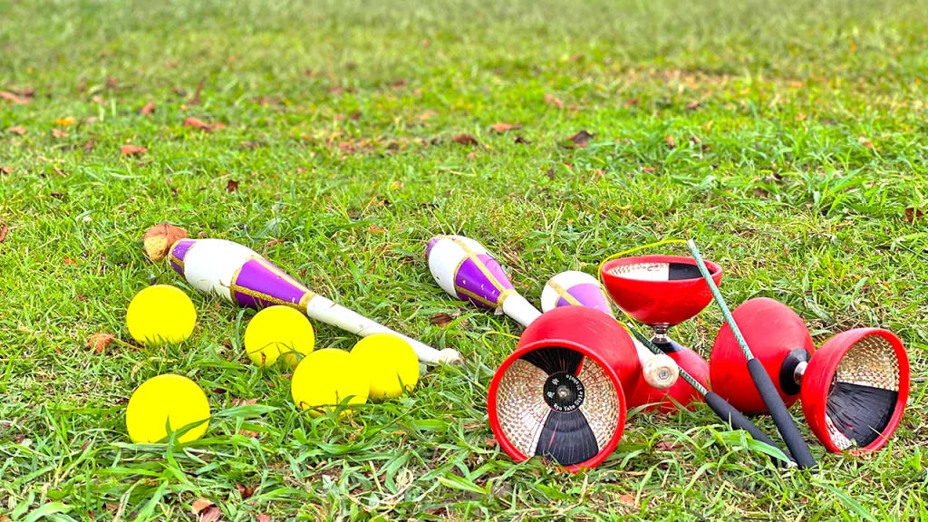 ヨーヨー、ボール、クラブ、リング、ダイススタッキング、クリスタルボール、スピニングボール、チンバランス、バルーンアート、簡易マジック、皿回し、シガーボックス、デビルスティックなど、そのバリエーションは豊富。