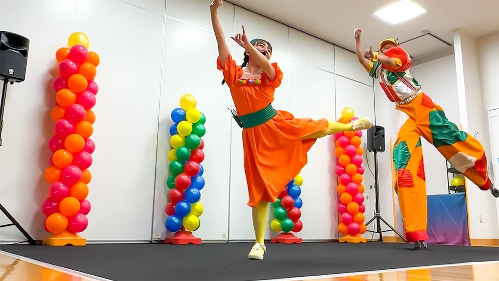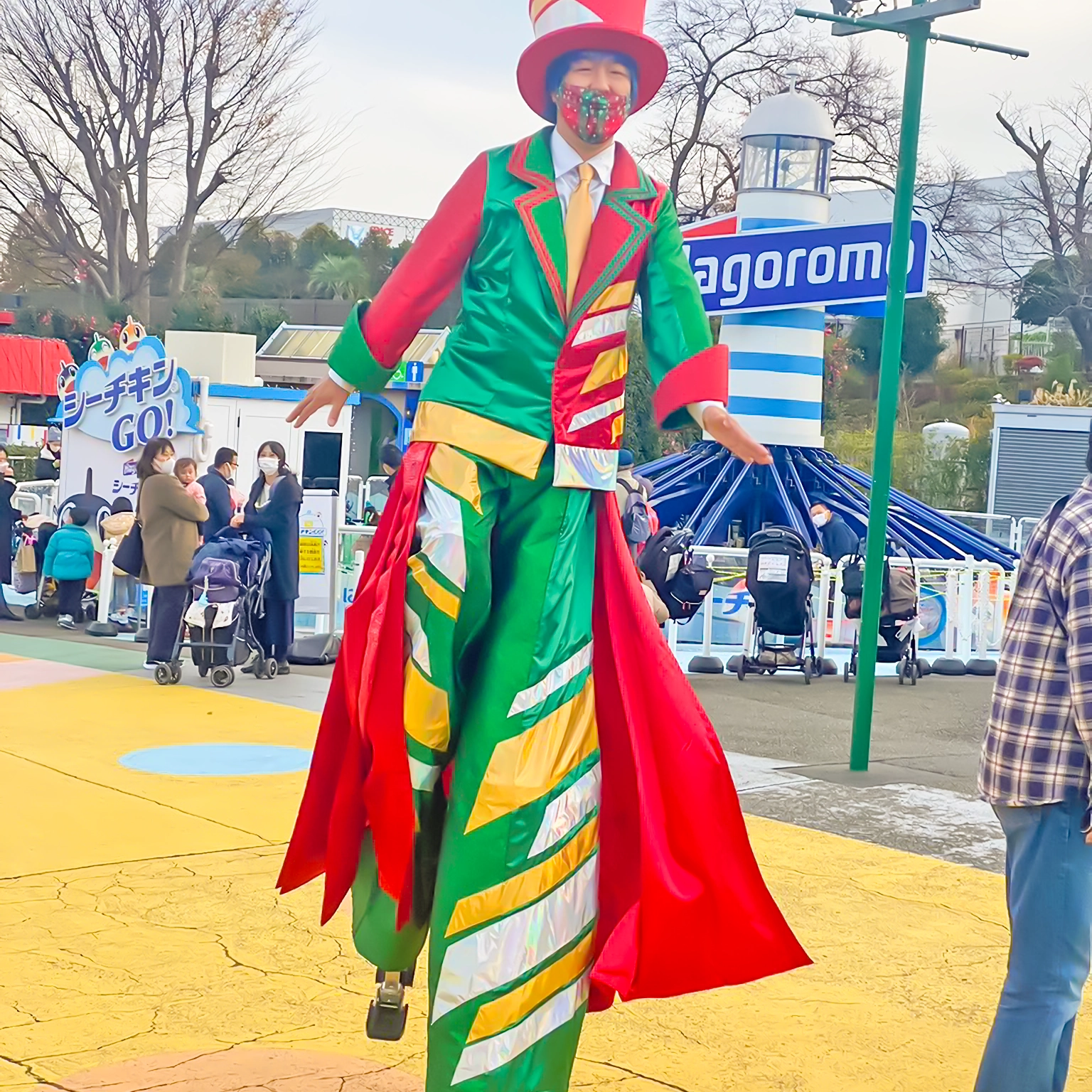 「安心して楽しんでもらう」を何より大切にし、そのために徹底してスティルト技術を磨いてきた。 その積み重ねにより、他のパフォーマーでは実現できない環境でのグリーティングや、ダンス・縄跳びなどといった表現まで可能。 培った技術が安心感を生み、常に安全なパフォーマンスを提供している。