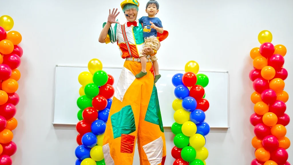 親子向けパフォーマンスチーム「PomPom -ぽんぽん-」のショーでは、“足長ゆうきおにいさん”として出演中。